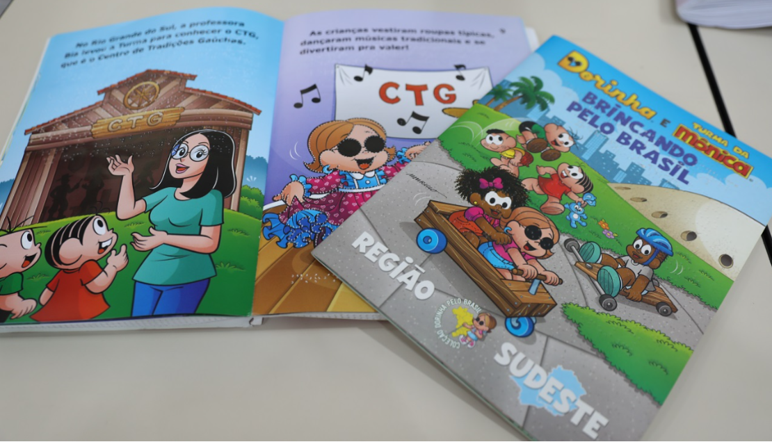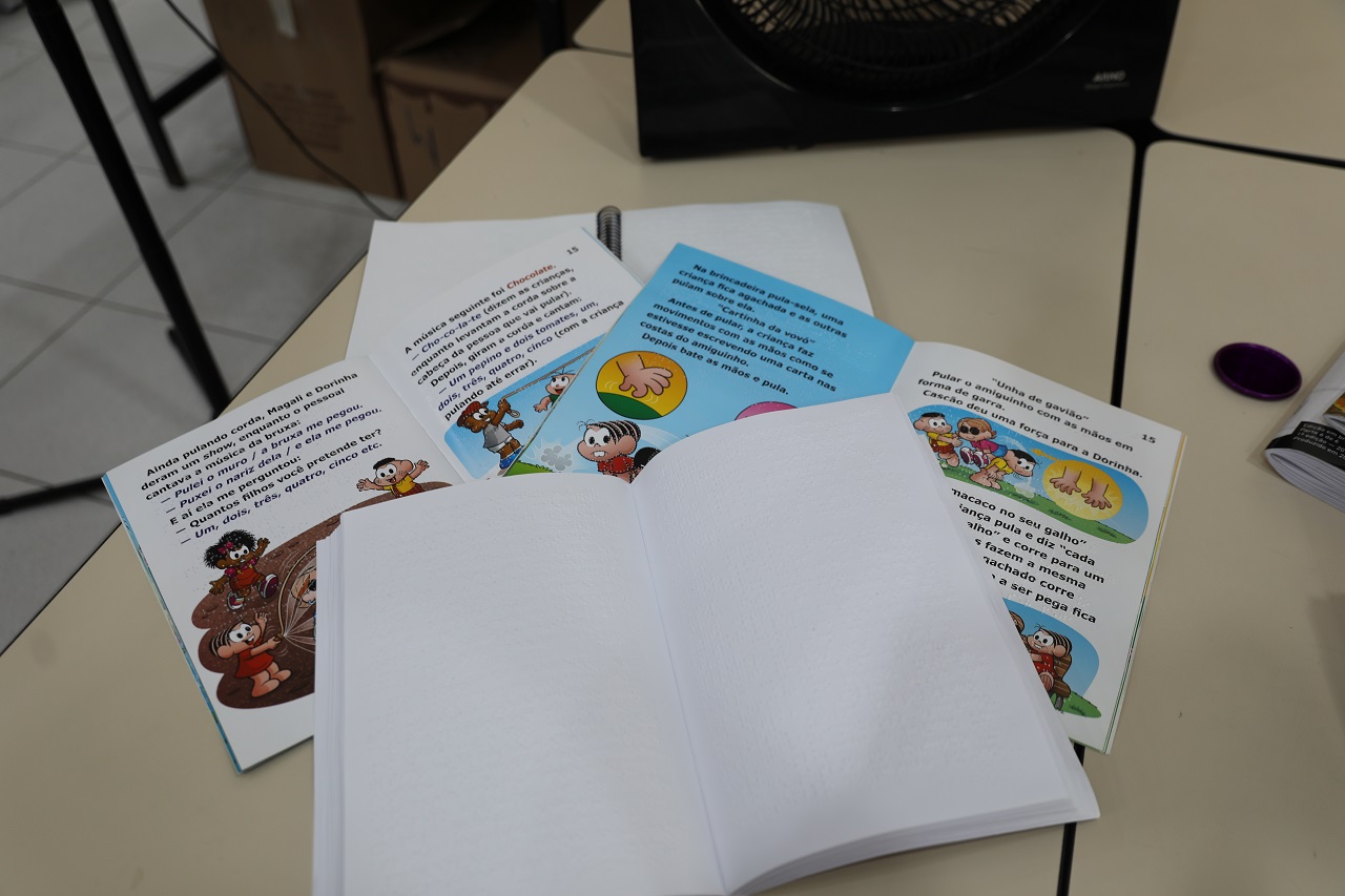 Os livros são doações da Fundação Dorina Nowill para Cegos, que há mais de 75 anos trabalha pela autonomia e inclusão de pessoas cegas e com baixa visão.