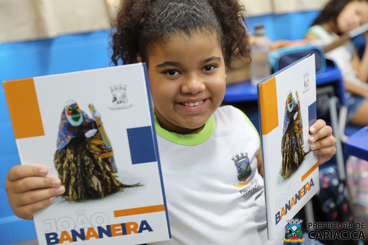 A aluna do 3º ano Kamila Bittencourt, de 8 anos, ficou encantada com o novo material escolar. “Ele é incrível. Estou apaixonada com o caderno. Tem o João Bananeira na capa. Conheci ele aqui na escola no ano passado e amei a história. Sempre que abrir o caderno vou lembrar dele”, diz.