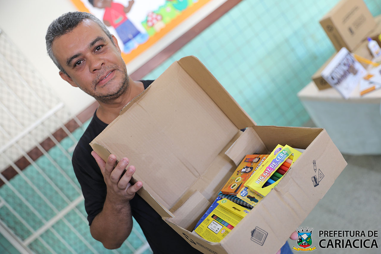 Na manhã desta quarta-feira (28), a Prefeitura de Cariacica iniciou a entrega dos kits escolares para 280 alunos da educação infantil no CMEI Corina Serrano Mota, em Nova Brasília. Os pais aprovaram a entrega do material.