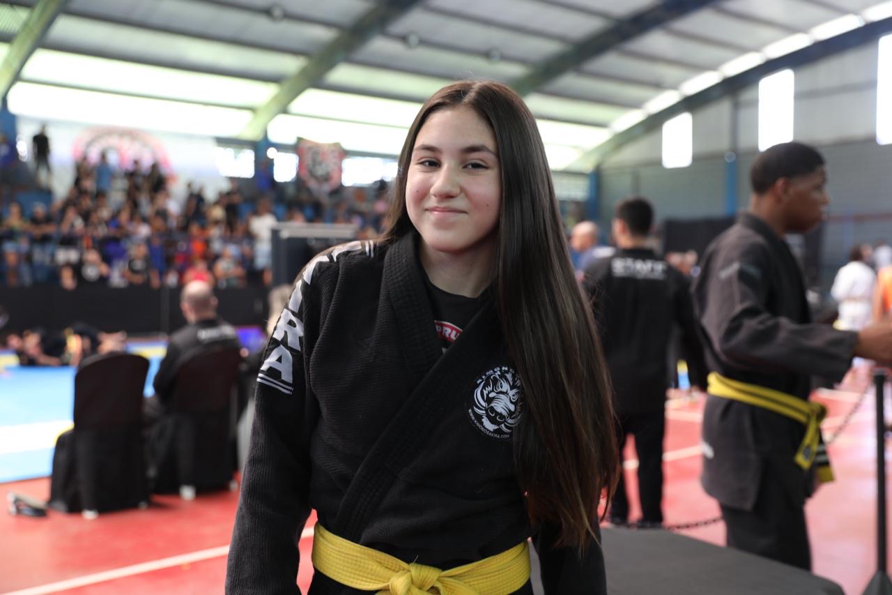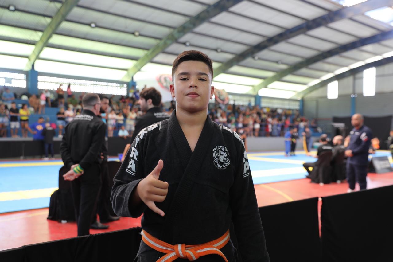 'É uma experiência muito boa, requer muito treinamento para chegar aqui e conseguir a vitória. O jiu-jítsu é a minha paixão', comentou Estevão Patrocínio, de 13 anos, que compete na categoria infantil. Ele é filho de Dandison e Raquel e morador de Rosa da Penha. Ele começou a treinar com 3 anos e já possui a vitória em um campeonato mundial em São Paulo.