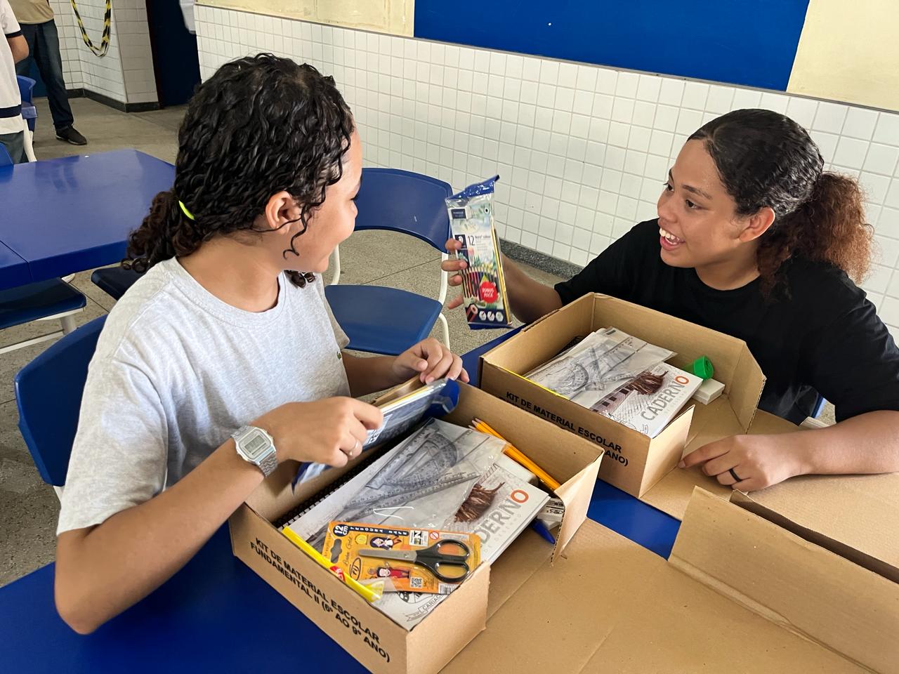 Quem também gostou muito dos kits foram as amigas Juliana Vitória Machado Leitão, que mora em Porto Novo, e Alana Pereira Gomes, do bairro Santa Cecília. Ambas têm 13 anos e são do 8º E. “A escola se importa com os alunos. É importante porque ajuda no aprendizado escolar”, afirmou Juliana. Alana elogiou o material. “Eu adorei o kit, ele é muito bonito, e gostei de tudo que veio nele. Vai me ajudar muito nos estudos”, completou.
