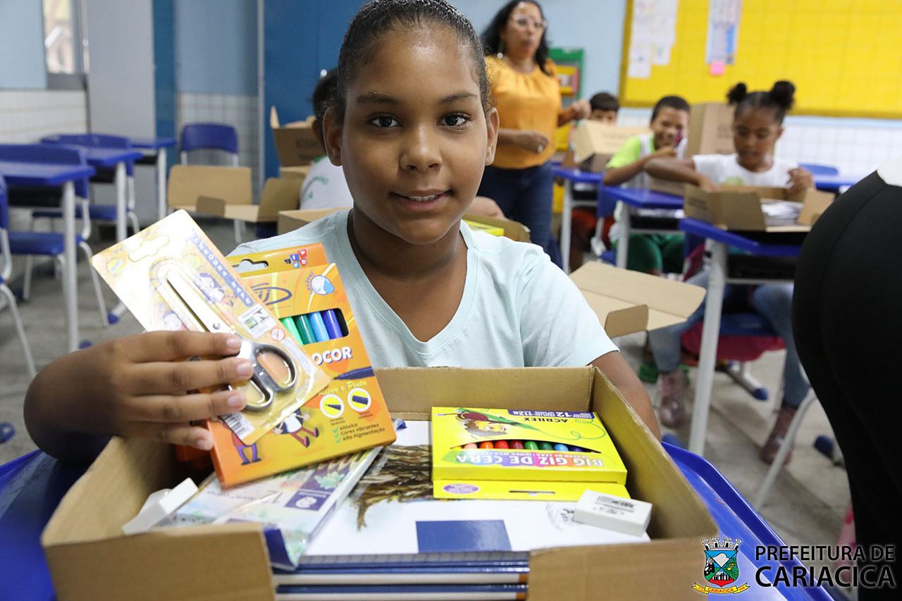 A Prefeitura de Cariacica inicia entrega de kits escolares para mais de 50 mil alunos das 128 unidades da rede pública municipal de ensino. A primeira remessa do material foi entregue na manhã desta segunda-feira (19) aos 322 alunos da Escola Municipal de Ensino Fundamental (Emef) Álvaro Armeloni, no bairro Oriente.