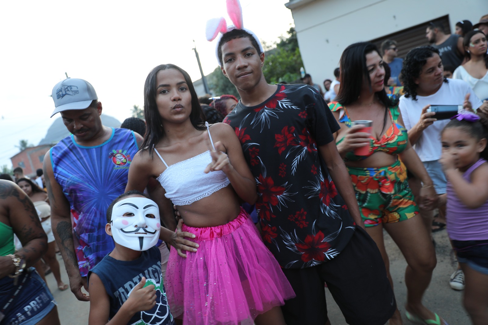No percurso do bloco, diversos foliões estavam curtindo a festa ao som do samba-enredo do bloco de rua. Teve gente que veio de outro município para aproveitar a programação. Foi o caso de Elzeni de Azevedo Vieira, 19 anos, que saio do bairro Universal, em Viana, para curtir a festa com as amigas Thays Christina de Araújo, 23, e Thalya Vitória de Araújo,18.