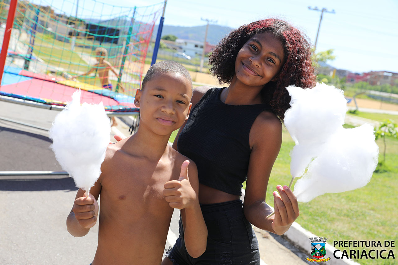 Nada melhor do que alternar entre uma atividade e outra um algodão-doce para adocicar as brincadeiras. Era o caso de Maxwuel Santos de Souza, de 9 anos, e Luane Gabrieli Damasceno, de 11 anos, ambos de Itanguá.