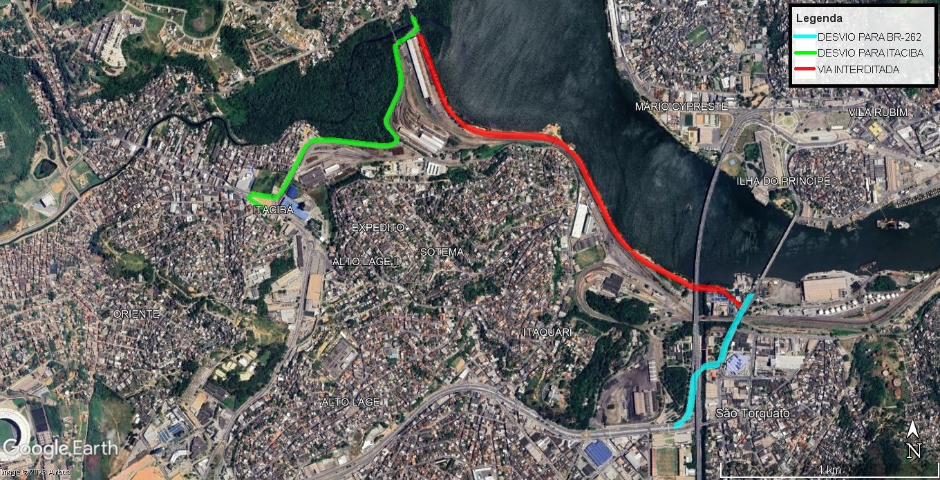 Como rota alternativa à Rua de Lazer, no período de interdição, os motoristas que vêm de São Torquato pela Cinco Pontes precisarão passar por baixo da Segunda Ponte, na altura do terminal e do Incra, seguir pela Avenida Mário Gurgel até o Trevo de Alto Lage e virar à direita, na Rodovia José Sette. Na altura de Itacibá será necessário contornar o terreno onde o Mercado Municipal de Cariacica está sendo construído, entrar no binário e seguir paralelo à oficina de vagões (Rua Pedro Nolasco), até a ponte do Rio Itanguá e virar à esquerda. Nos locais haverá placas indicativas e agentes para orientar o trânsito.