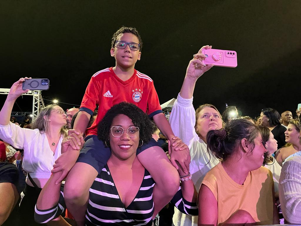 A assistente administrativa Ana Lourdes Ferreira Gomes, de 48 anos, moradora do bairro Expedito desde que nasceu, viu tudo da pedra próxima ao mirante e também aprovou o espetáculo. 'A festa está muito organizada. Estão todos de parabéns. Eu fiquei emocionada com o show de drones, porque nunca vi, e fiquei emocionada', relatou. Ana Lourdes estava acompanhada do irmão, o militar Perli Gomes, de 42 anos, e a mãe, a aposentada Ijadilza Maria Gomes, de 75 anos.