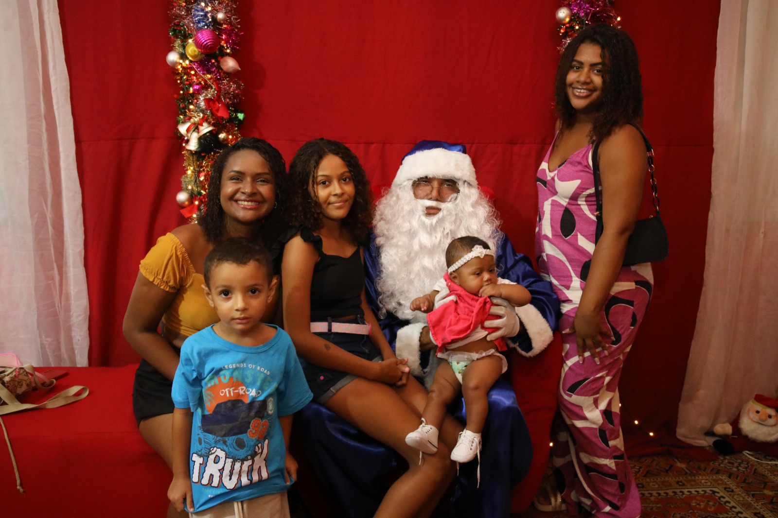 A irmã dela, Thaina, também aprovou o evento e levou a pequena Analice, sua filha de 5 meses, para tirar foto com o Bom Velhinho.