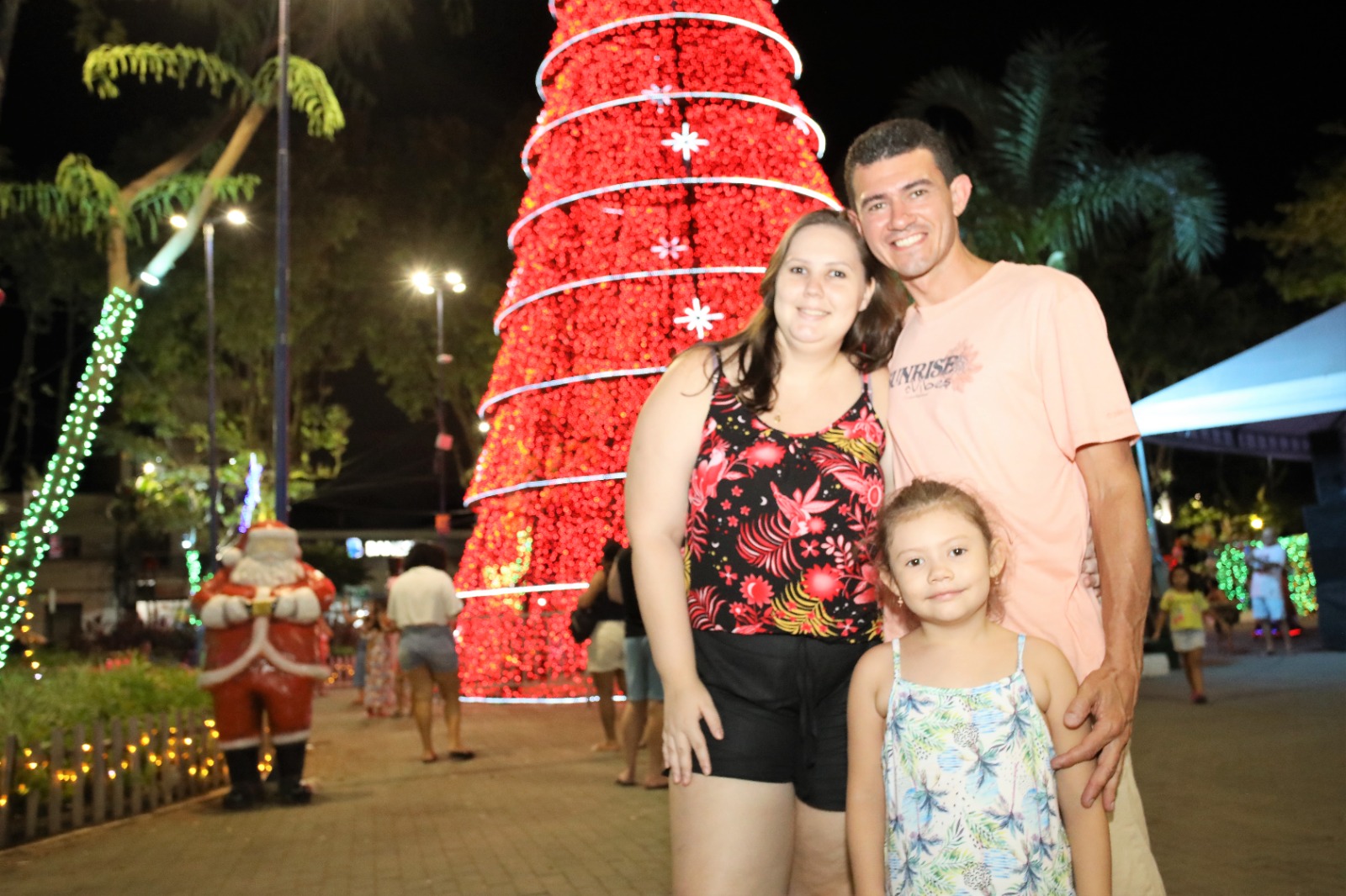 O casal Vinícius Almeida, 36, e Jessica Vieira Arnhobz, 28, que mora no bairro Oriente, também ficou encantado com a programação natalina. Os dois estavam com a pequena Mariah Arnhobz Almeida, 5 anos.
