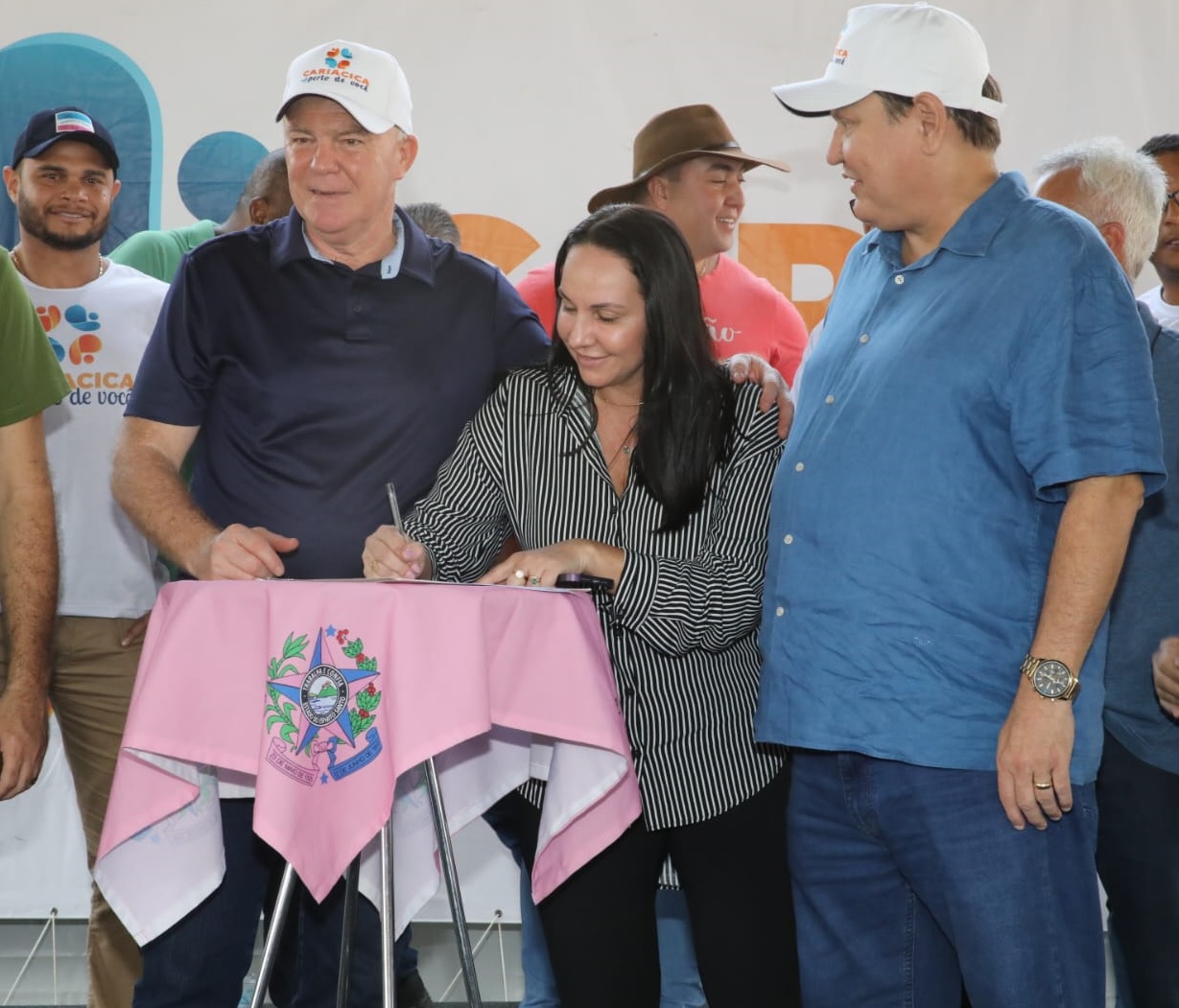 O chefe do Executivo estadual e o prefeito Euclério Sampaio assinaram sibolicamente, durante a abertura oficial 'Cariacica + Perto de Você', a ordem de serviço para a construção de muro de contenção e recomposição da avenida Elói da Penha, em Padre Gabriel.