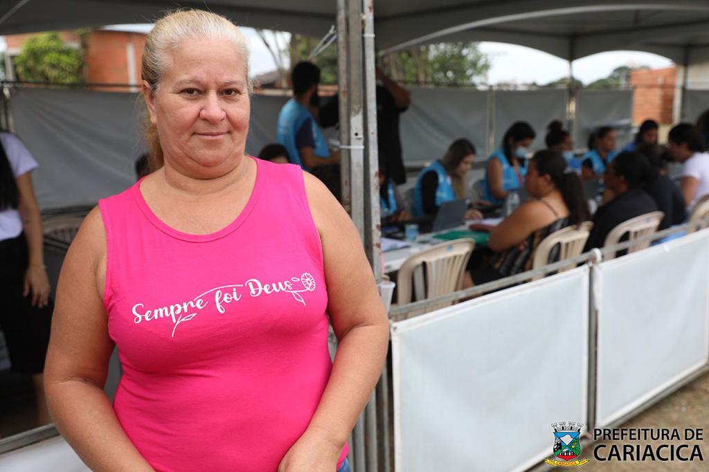 A dona de casa Maria de Fátima Gomes dos Santos precisou atualizar o CadÚnico. Sentou, ficou pouco tempo esperando e logo foi atendida. 'Essa ação é muito boa. Tudo muito tranquilo e organizado. É bom quando tudo fica próximo da gente'. Dona Maria estava se referindo à ação de cidadania Cariacica + Perto de Você, que aconteceu neste sábado (30), em Vila Progresso.