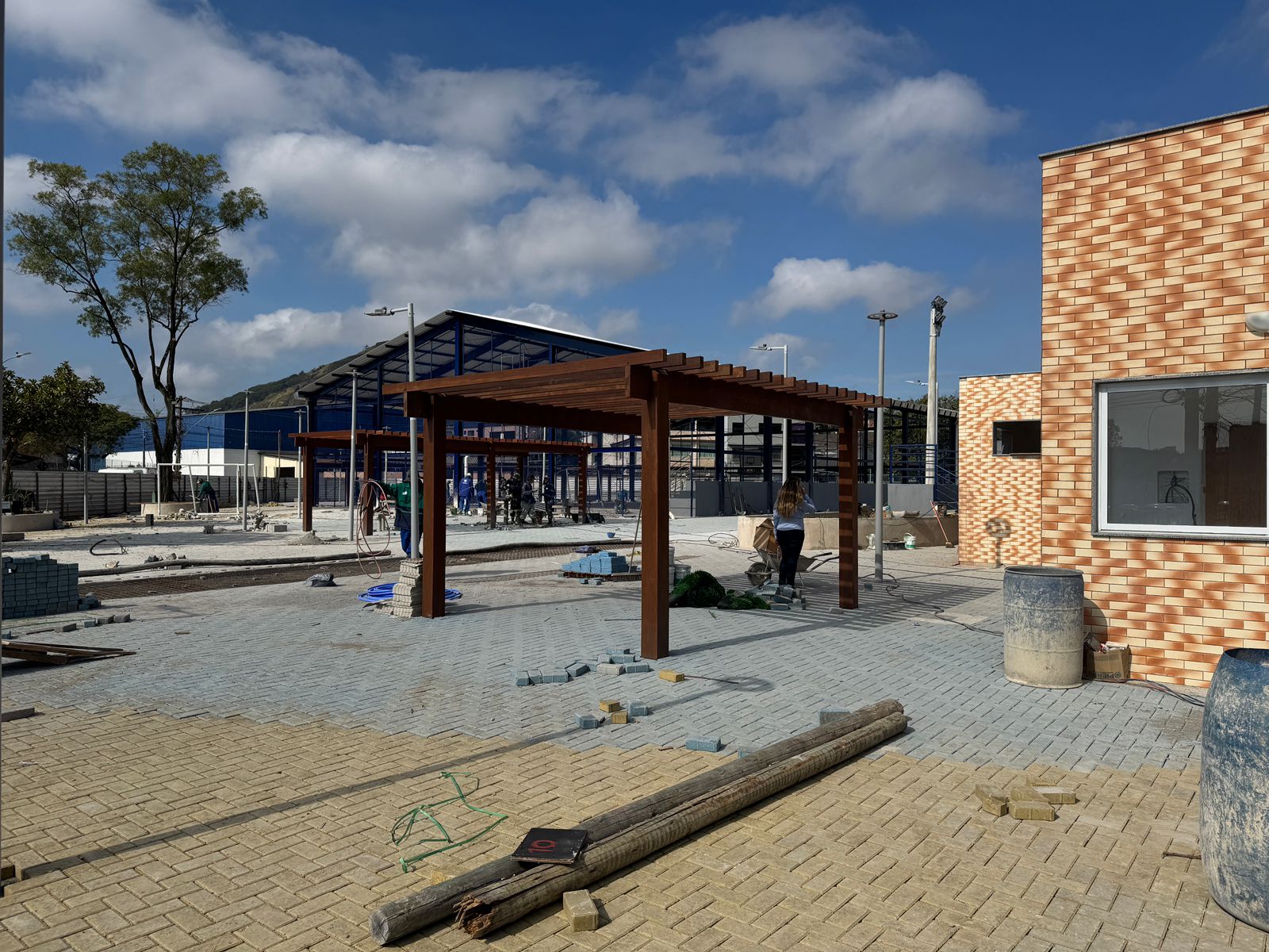 A pavimentação externa também deve ser concluída nesta semana, quando deve ser iniciada a parte do paisagismo e a pavimentação do estacionamento.