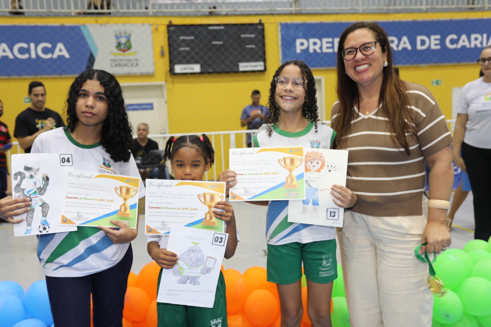 A abertura dos Jogos Estudantis de Cariacica (JEMC), que ocorreu nesta terça-feira (1°), já iniciou com premiações para as alunas que desenharam o melhor mascote para representar as competições. A estudante Ana Clara Oliveira, de 9 anos, desenhou o Moxuarito, que foi eleito o melhor desenho e escolhido como o amuleto da sorte dos alunos.