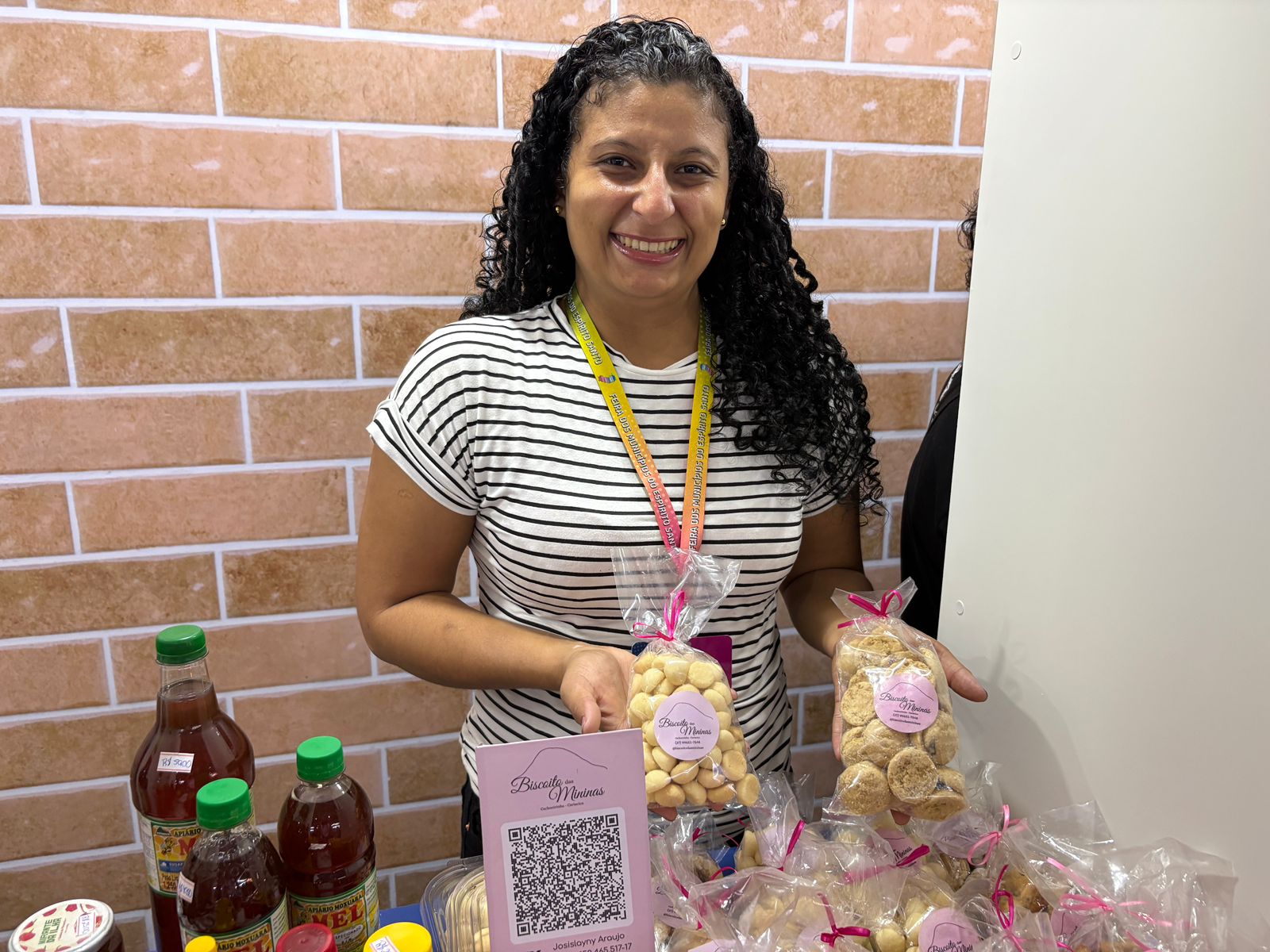 Uma das empreendedoras que está representando os comerciantes do município no estande, Josislaine da Penha, proprietária do produto “Biscoito das Mininas”, falou sobre a oportunidade da exposição. “Estou muito feliz em participar da Feira dos Municípios novamente. É uma oportunidade incrível para divulgar nossos produtos e nossa marca. Agradeço à prefeitura pelo convite e espero que esse ano seja ainda melhor que o anterior. A feira é fundamental para a gente que não tem loja física, é um espaço para mostrar o que a gente tem de melhor e gerar renda extra”, contou ela.
