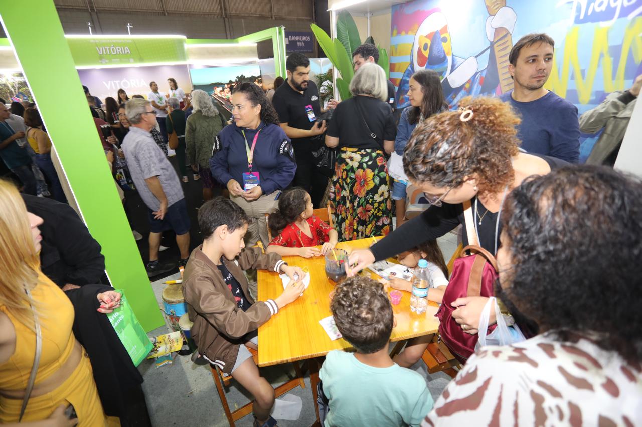 O cortejo do João Bananeira, personagem ícone de Cariacica, acompanhado de uma banda de congo, movimentou o público da Feira dos Municípios neste sábado (5). No estande, o público ainda pôde fazer pinturas de máscaras, e conferir a exposição de artesanato e produtos, como a banana orgânica, típica da região.