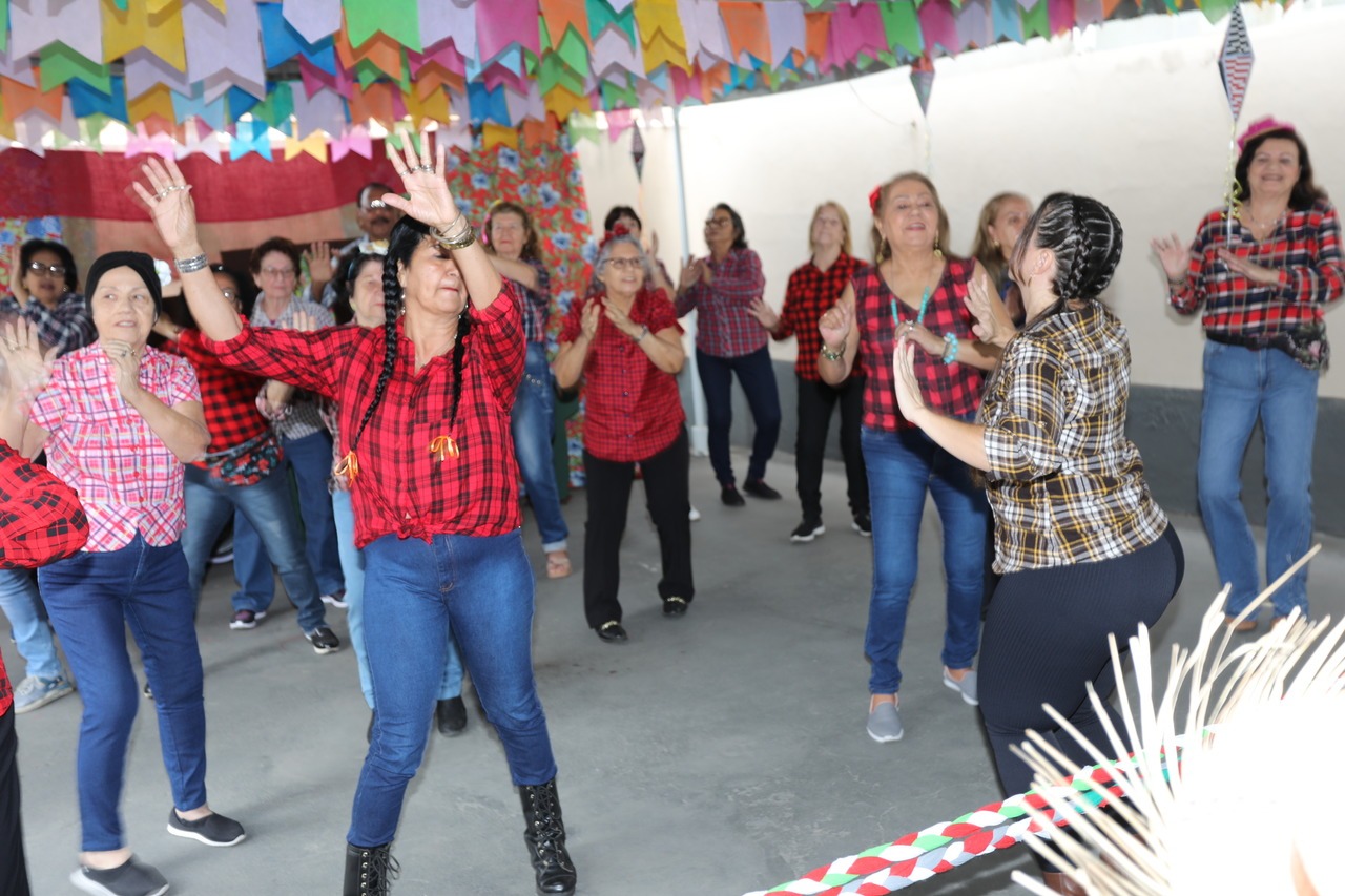 A manhã desta quarta-feira (9) foi de muita animação no Centro de Convivência Para Pessoas Idosas (CCPI) de Jardim América. Com chapéu de palha, vestido rodado e blusa xadrez, os atendidos no equipamento tiveram um dia típico de “festa na roça”.