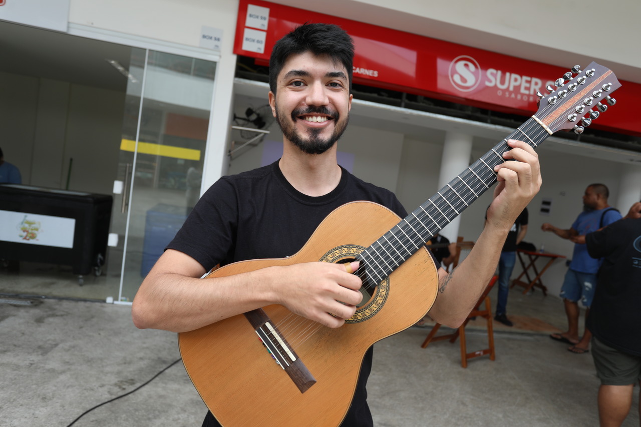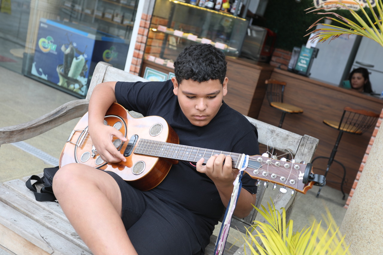 Quem participa, sai inspirado. O estudante Davi Nunes, de 14 anos, está participando pela primeira vez e conta que a experiência é única. "Eu vim aqui no mercado só para cortar o cabelo, vi que estava tendo a oficina e resolvi participar, até porque sempre tive vontade de aprender a tocar viola. Quero aprender e tocar junto com minha família aos domingos”, finaliza.