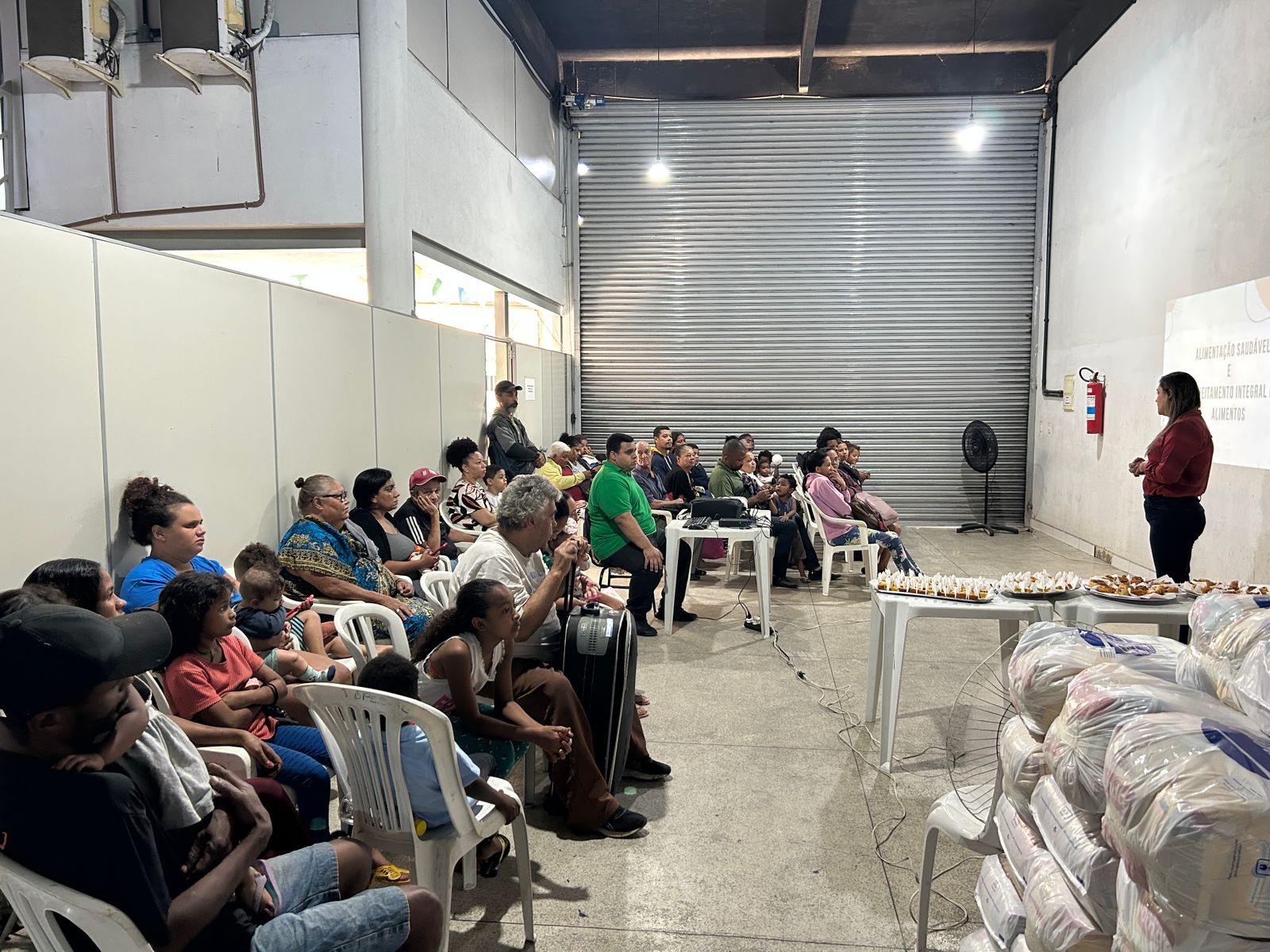 O Banco de Alimentos Josué de Castro, que funciona em Morada de Santa Fé, iniciou, no último mês, um projeto que visa oferecer uma série de oficinas sobre alimentação saudável para famílias cadastradas no equipamento. Na última quarta-feira (30), mais de 30 pessoas, que são beneficiadas pelo Banco, participaram do encontro sobre segurança alimentar e nutricional, aprendendo, também, sobre reaproveitamento de alimentos.