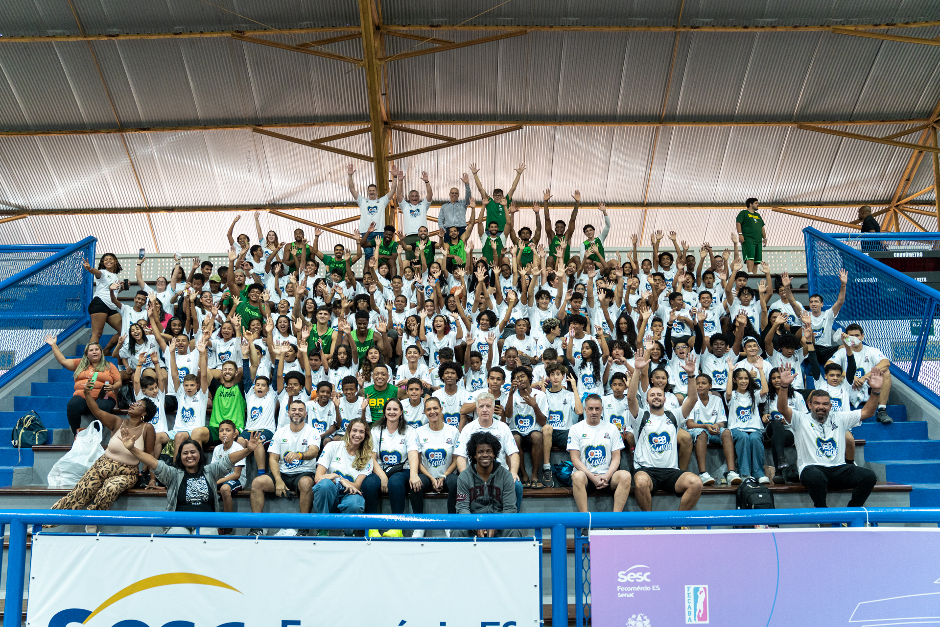 Emoção e aprendizado! Mais de 40 estudantes das Escolas Municipais de Ensino Fundamental (Emef) Terfina Rocha Ferreira, de Itacibá; Stélida Dias, de Campo Grande; Emef Padre Gabriel Roger Maire, de Porto Novo e da Emef Oliveira Castro, de Itaquari, viveram um momento marcante: assistiram ao treino da Seleção Brasileira de Basquete, realizado no SESC de Guarapari. O encontro proporcionou aprendizado e gerou inspiração para os alunos, que puderam ver de perto seus ídolos nas quadras. As crianças e adolescentes que assistiram ao treino fazem parte do projeto de basquete do Instituto Anderson Varejão (IAV).