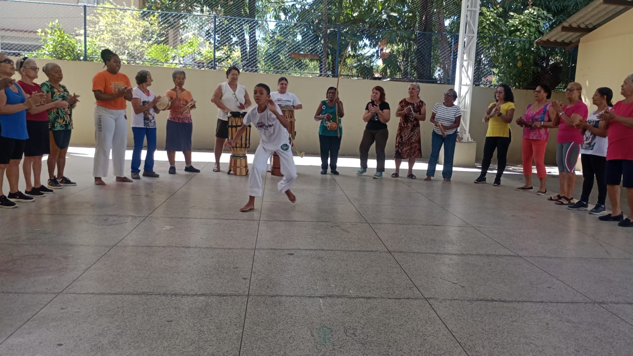 A atividade teve como objetivo incentivar a troca de experiências e valorizar a importância das práticas coletivas para o bem-estar da pessoa idosa, com uma oficina de capoeira que trouxe energia e novos aprendizados.