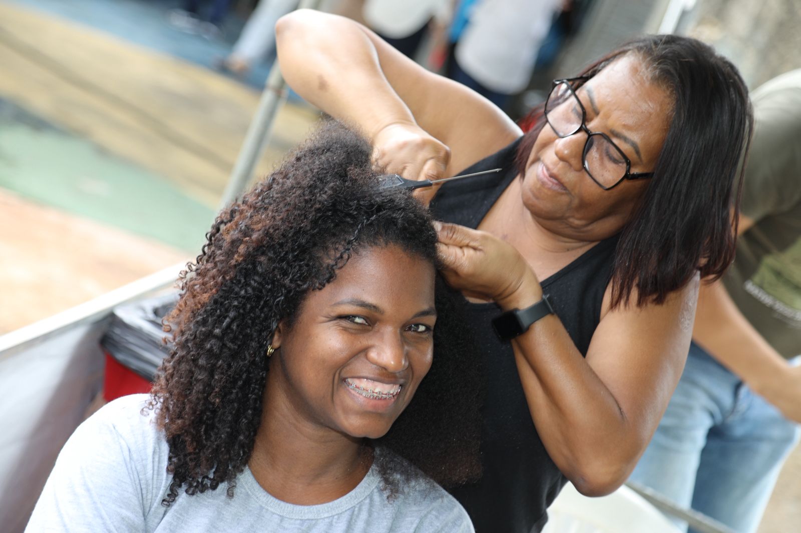 A programação também contou com acesso a aferição de pressão arterial e glicemia, vacinação humana (contra Covid-19, Influenza e HPV), além de vacinação animal, solicitar mamografia e encaminhamentos para vagas de emprego. Os munícipes também puderam fazer corte de cabelo, atendimento de trancista e sessões de massoterapia. Alexandra Gomes, também moradora, aproveitou a oportunidade para fazer tranças no cabelo. “Evento com muitas pessoas e serviços, nunca tinha visto assim antes. Foi ótimo”, falou ela.
