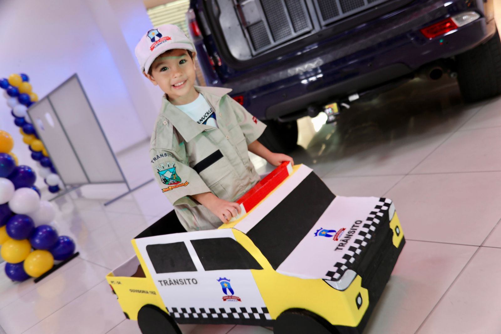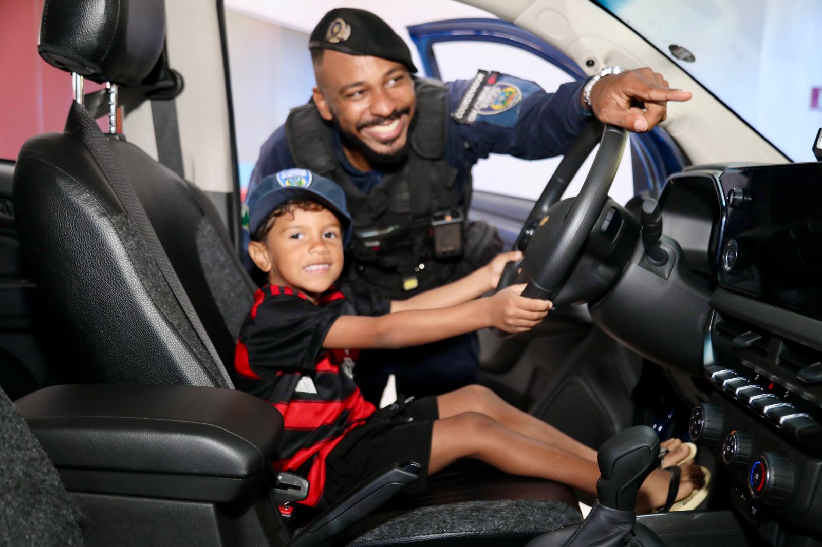 As crianças também tiveram participação especial com a atividade “Guarda Mirim em Ação”. Elas puderam vestir o uniforme da corporação, aprender noções de cidadania e segurança de forma lúdica e, ao final, receberam uma carteirinha de guarda mirim.