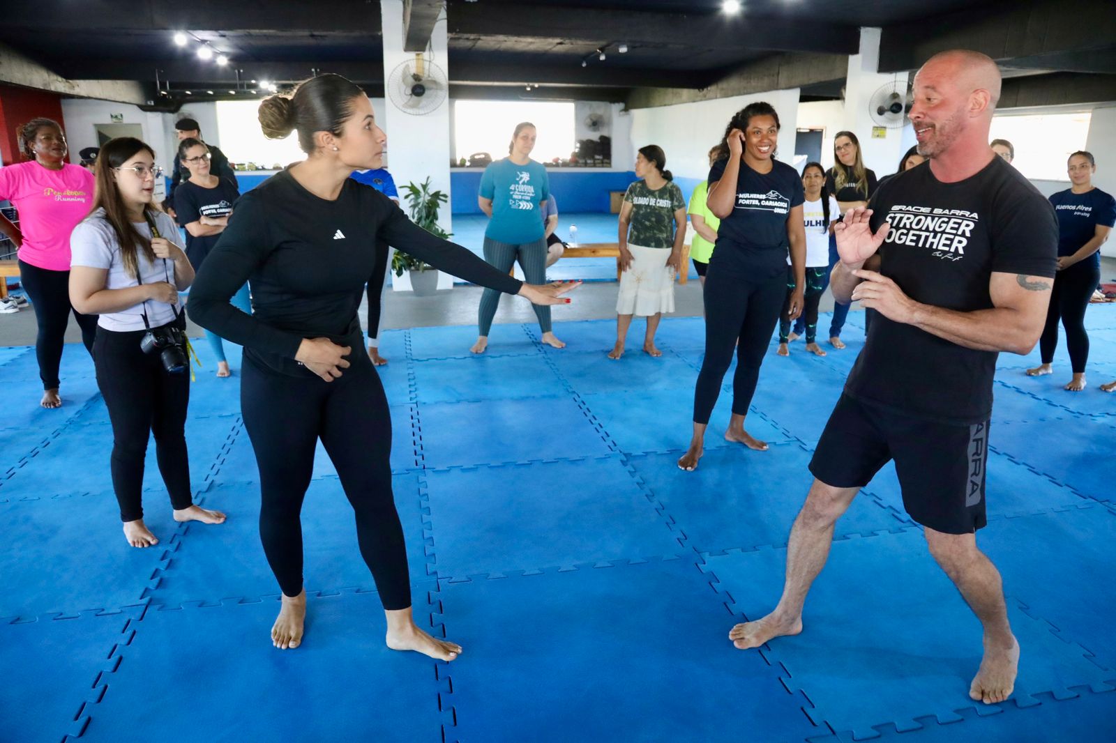 A iniciativa integrou o conjunto de ações de conscientização sobre a violência contra a mulher e foi realizada pela Secretaria da Mulher e Direitos Humanos (Semdh), em parceria com o Instituto Veredas e a Federação de Jiu-Jitsu Desportivo do Espírito Santo (FJJD-ES).