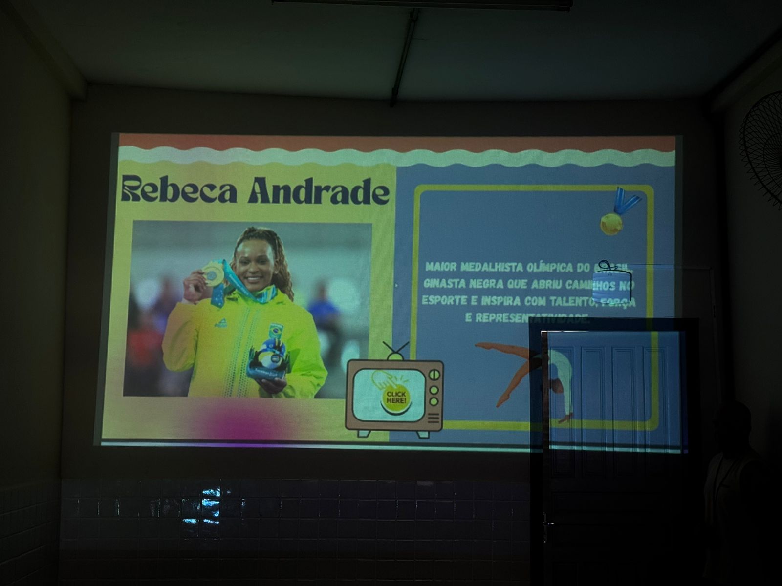 Durante a palestra, os estudantes conheceram um pouco da história de Carolina Maria de Jesus, considerada uma das mais importantes escritoras negras do país; de Machado de Assis, escritor, jornalista e romancista; de Lázaro Ramos, ator, diretor e escritor; e de Rebeca Andrade, maior medalhista da história do Brasil nos Jogos Olímpicos, com seis conquistas no total. Além deles, também foram apresentados muitos outros talentos e inspirações.