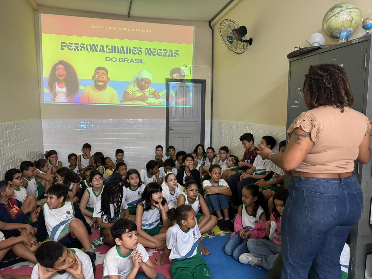 Promover o conhecimento sobre personalidades negras que marcaram a história com sua luta, talento e conquistas é essencial para tornar cidadãos mais conscientes e respeitosos. Diante disso, a Escola Municipal de Ensino Fundamental (Emef) Professor Cerqueira Lima, em Jardim América, promoveu, na manhã desta quinta-feira (2) uma palestra com o tema “Personalidades Negras do Brasil”, com o objetivo de valorizar a diversidade e reconhecer o papel fundamental do povo negro na construção da nossa sociedade.