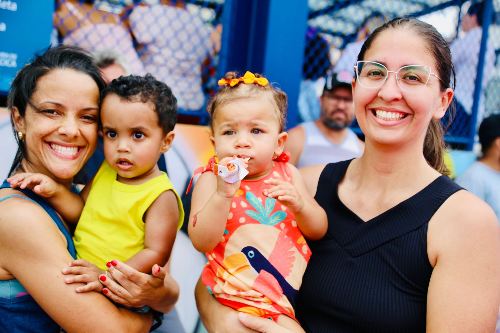 Das 8h às 12h, o espaço recebeu centenas de famílias para uma manhã repleta de atividades: pula-pula, futebol de sabão, pintura facial, pipoca, algodão-doce e recreação garantiram a animação da garotada.