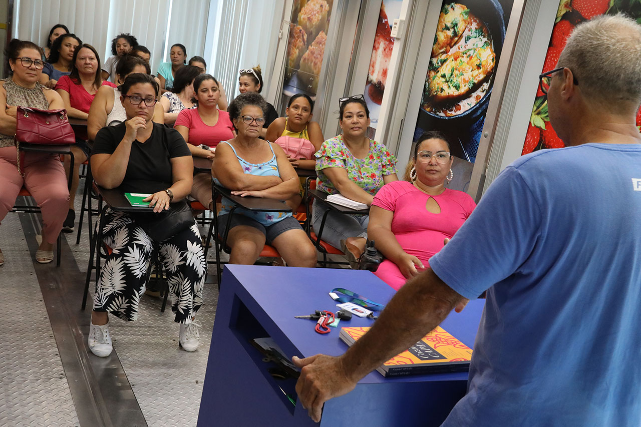 A carreta do Sesi estacionou no Parque Linear de São Conrado e já começou a movimentar a comunidade com novas oportunidades de qualificação profissional. Nesta segunda-feira (13), teve início o curso de Doces para Festas, que está capacitando os participantes nas principais técnicas de confeitaria para eventos. A ação é uma iniciativa da Prefeitura de Cariacica, por meio da Secretaria de Desenvolvimento Econômico (Semde), e em parceria com o Sistema S (Sesi, Senai e Findes).
