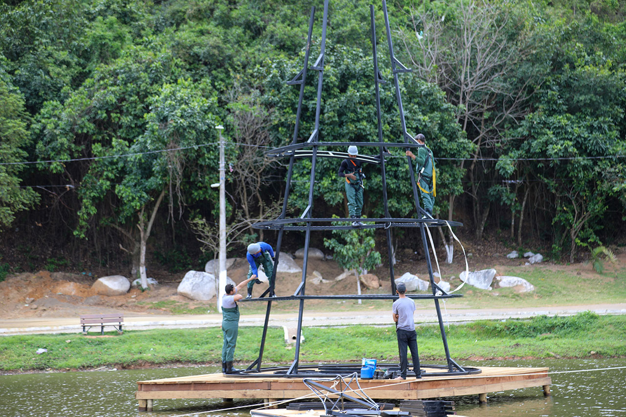 O destaque fica por conta das dez árvores flutuantes que estão sendo instaladas na lagoa, incluindo uma principal, com 12,5 metros de altura e 80 mil microlâmpadas de LED, cercada por um chafariz iluminado, uma novidade em Cariacica. O espaço ainda ganhará um grande painel luminoso com o nome da cidade.
