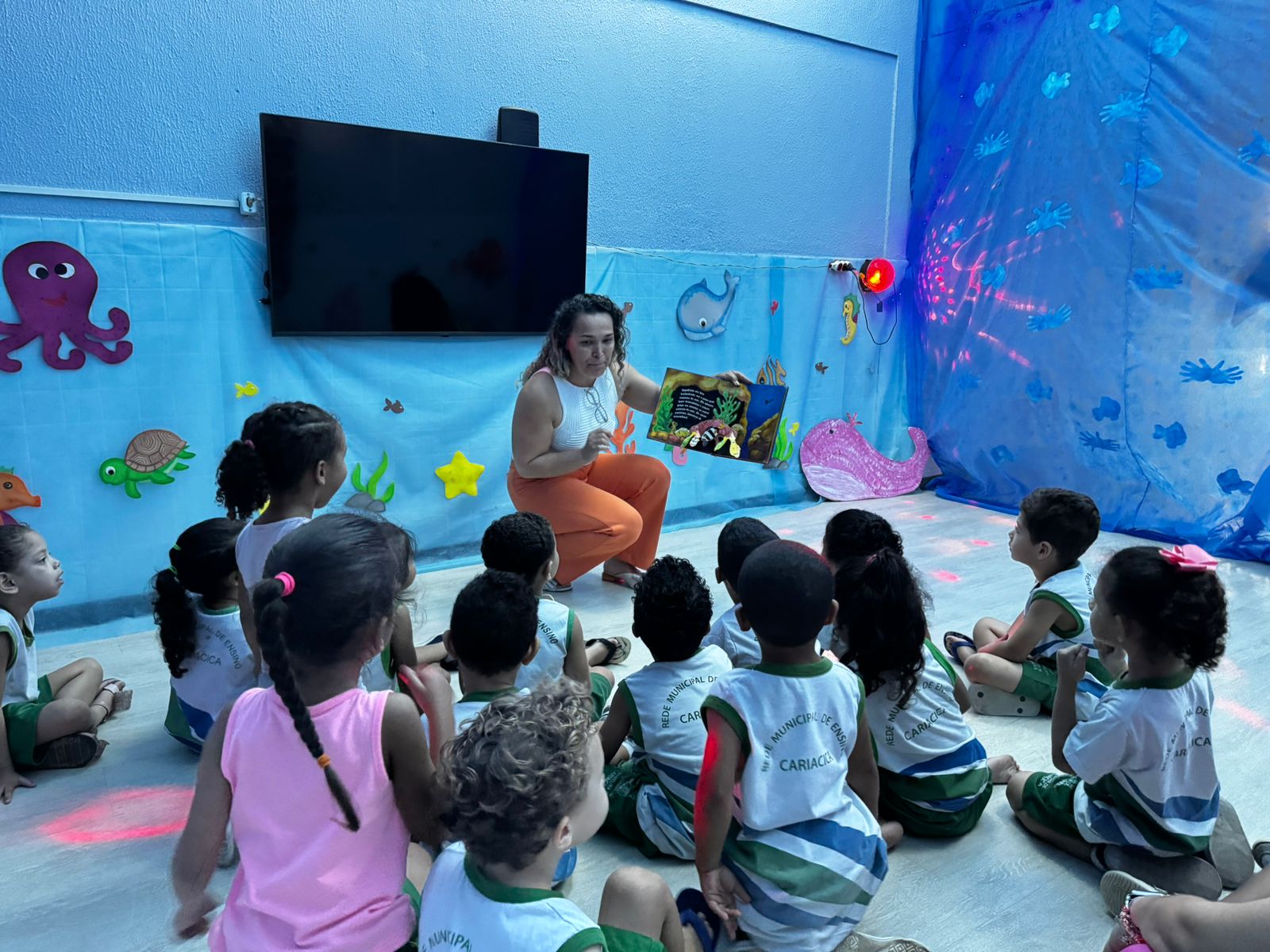Cada turma desenvolveu sua proposta de acordo com a faixa etária e o interesse dos alunos. Em alguns grupos, as famílias também participaram, ajudando as crianças a criarem e narrarem suas próprias histórias autorais.