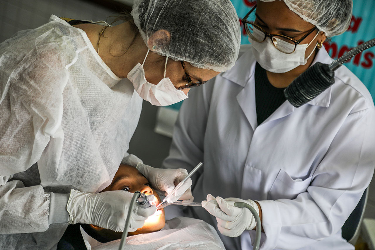 Além disso, o programa instala consultórios portáteis nas escolas para garantir atendimento clínico individualizado. As equipes de cirurgiões-dentistas acompanham de perto a evolução dos alunos e realizam procedimentos quando necessário.