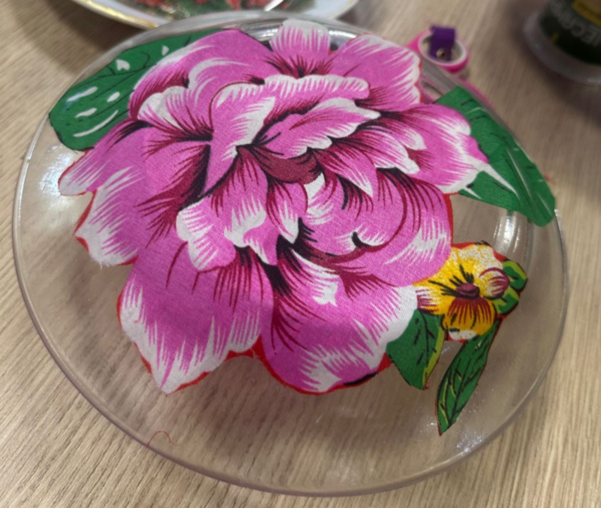 Subtema: trabalho em equipe e empatia (Decoupagem em prato de vidro)