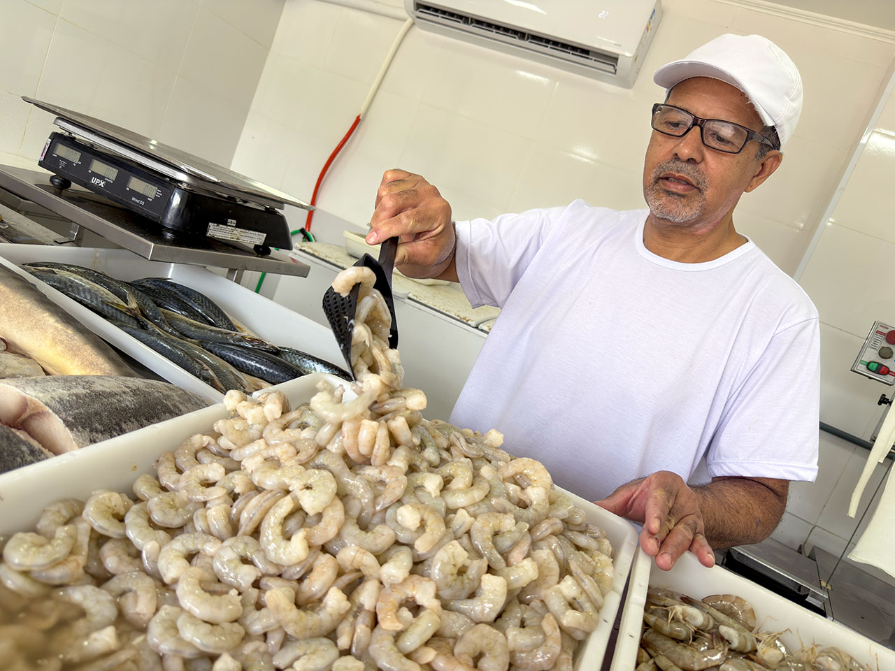 Com mais de 30 anos de experiência no ramo, o proprietário Mário José destaca a variedade de opções. O balcão é diariamente abastecido com peixes e camarões frescos, além de uma seção de congelados que inclui lula, sururu, polvo e filés de tilápia e pescada.