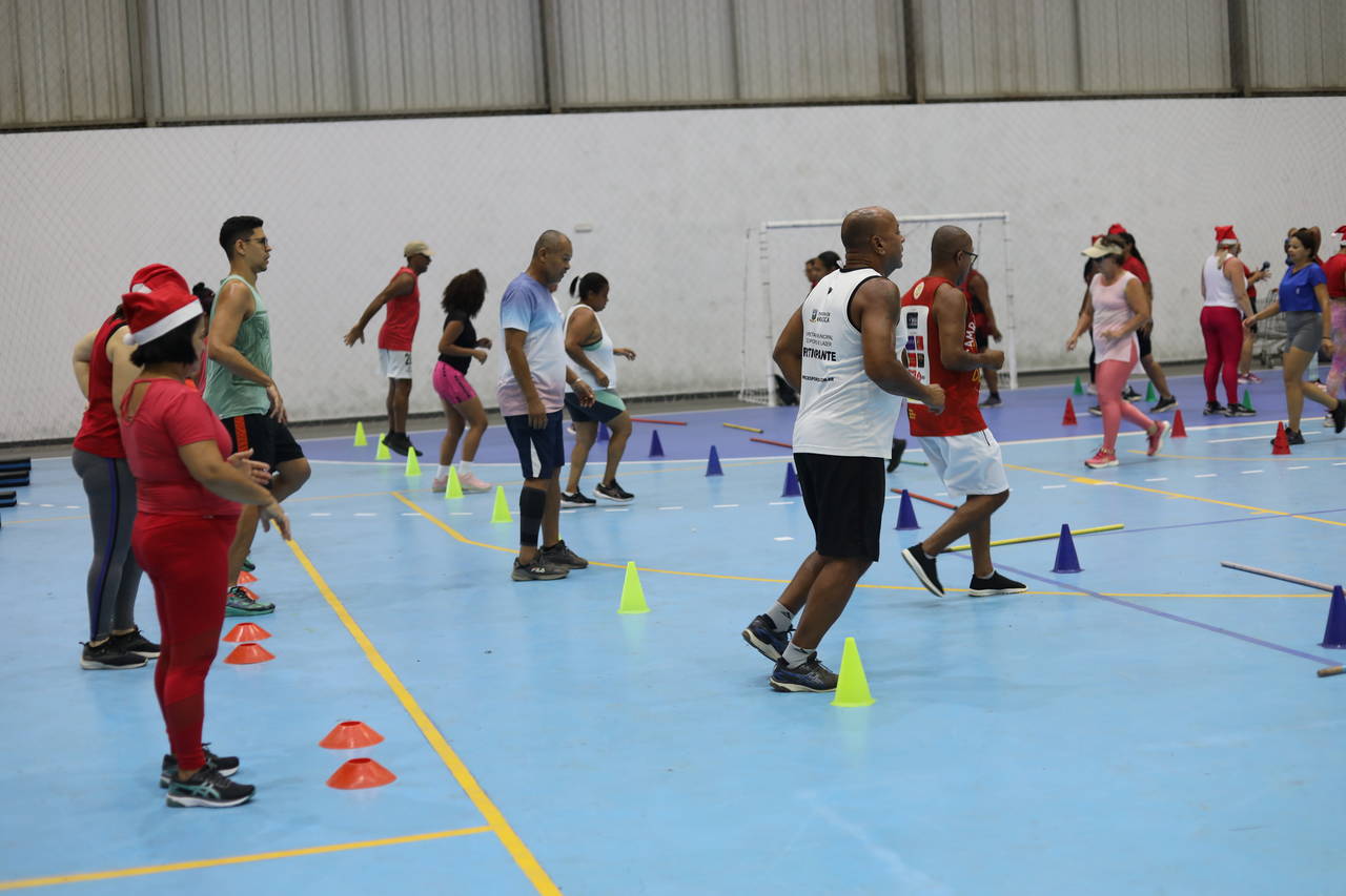 Aproveitando a magia do Natal, um aulão temático animou a Estação Cidadania-Esporte, em Nova Brasília, na manhã desta sexta-feira (19). Em um momento de atividades, os alunos praticaram aulas de ritmos e circuitos, promovendo o bem-estar e saúde. A iniciativa, realizada pela Secretaria Municipal de Esporte e Lazer (Semesp), também será realizada às 17 horas, no mesmo local.