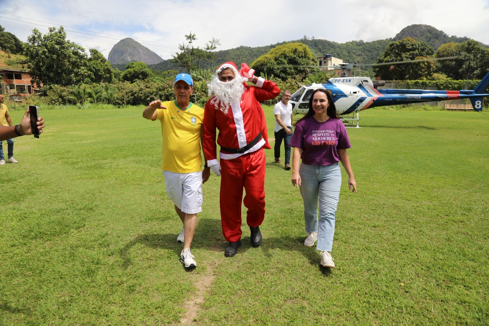 A iniciativa foi desenvolvida na comunidade pela ONG Gerando Falcões, em parceria com o Governo do Estado e a Prefeitura de Cariacica. A chegada do bom velhinho foi acompanhada pelo vice-governador Ricardo Ferraço e pela vice-prefeita de Cariacica, Shymenne de Castro, que participaram do momento de confraternização com os moradores.