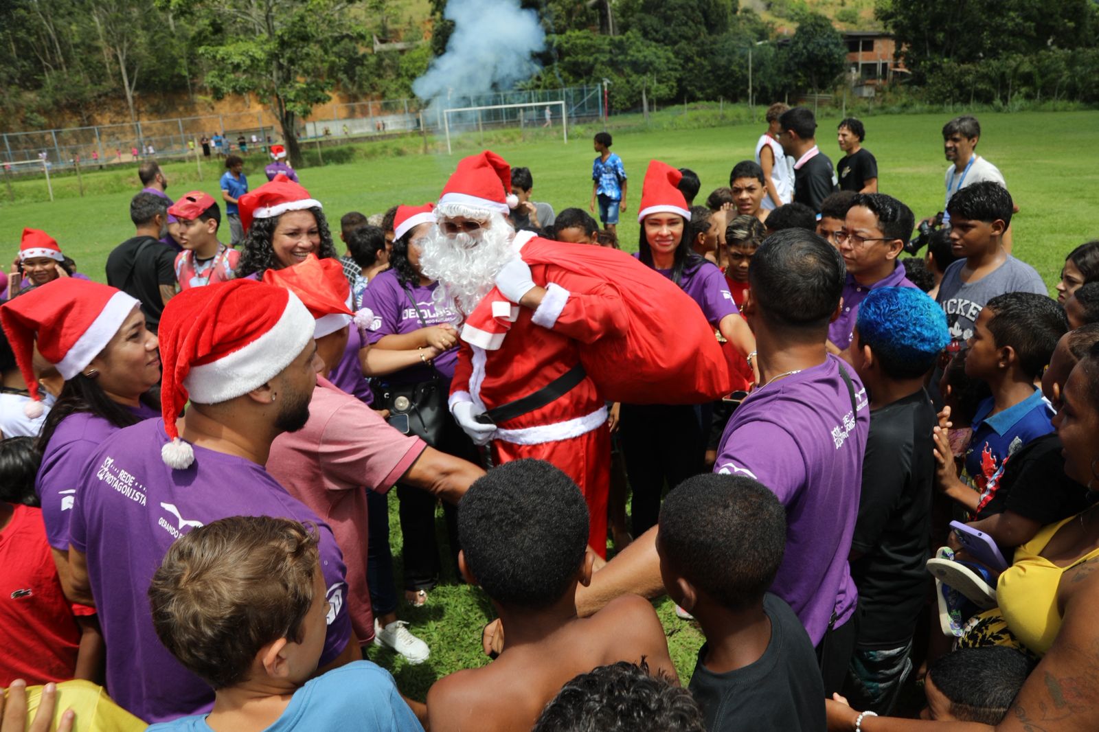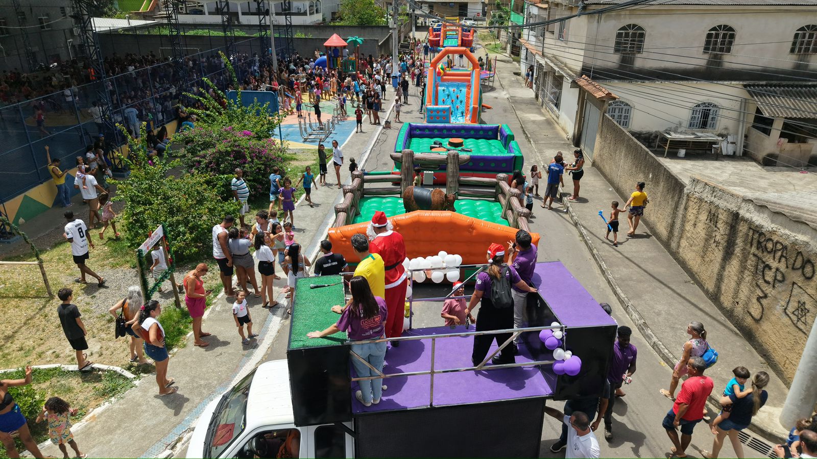 A manhã deste sábado (20) foi de diversão e sorrisos para as famílias da comunidade de Piranema. O Papai Noel chegou ao bairro levando alegria para as crianças com a entrega de presentes, em uma ação especial promovida pelo projeto Favela 3D. Além dos presentes, a programação contou com brinquedos, distribuição de pipoca e algodão-doce.