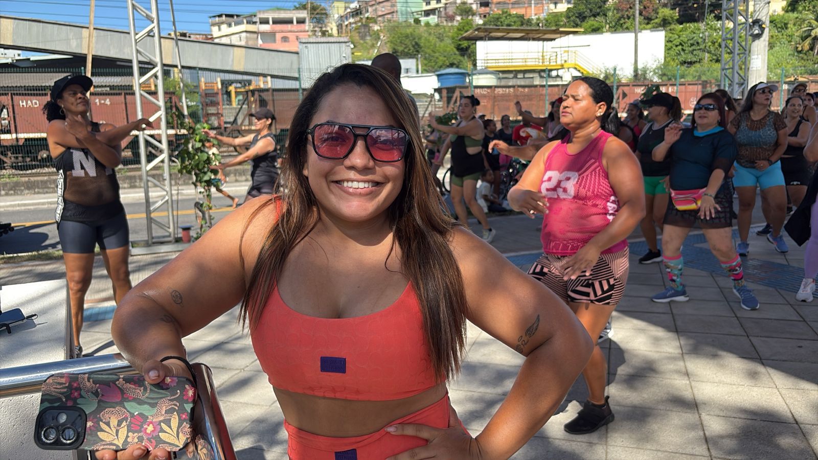 Quem aproveitou logo cedo a Aula de Ritmos foi Dayane Américo. Ela destacou que "é qualidade de vida, eu já faço com o professor no núcleo de Flexal e amo. Eu trabalho aos domingos, hoje estou de folga e aproveitei para vir. Estar com as amigas, fazer uma caminhada e aproveitar o dia é maravilhoso. Fora essa vista que é espetacular", disse.