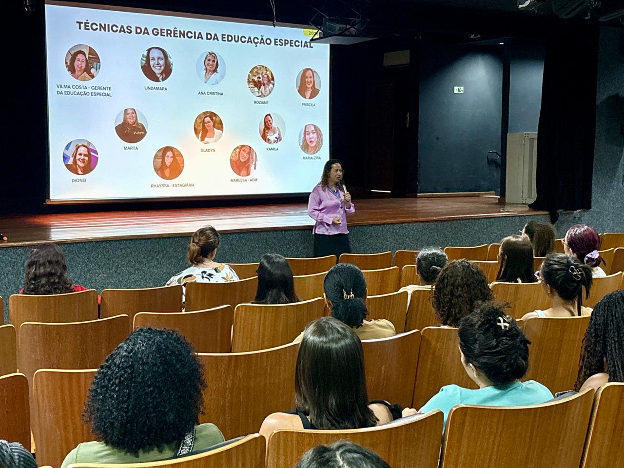 Os novos assistentes educacionais da Secretaria Municipal de Educação (Seme) participaram, nesta sexta-feira (6), no Centro Cultural Frei Civitella Del Tronto, de uma formação administrativa e orientativa voltada ao fortalecimento do atendimento aos estudantes da Educação Especial na rede municipal. O encontro abordou temas como o público-alvo, as atribuições dos profissionais e o desenvolvimento do trabalho pedagógico.