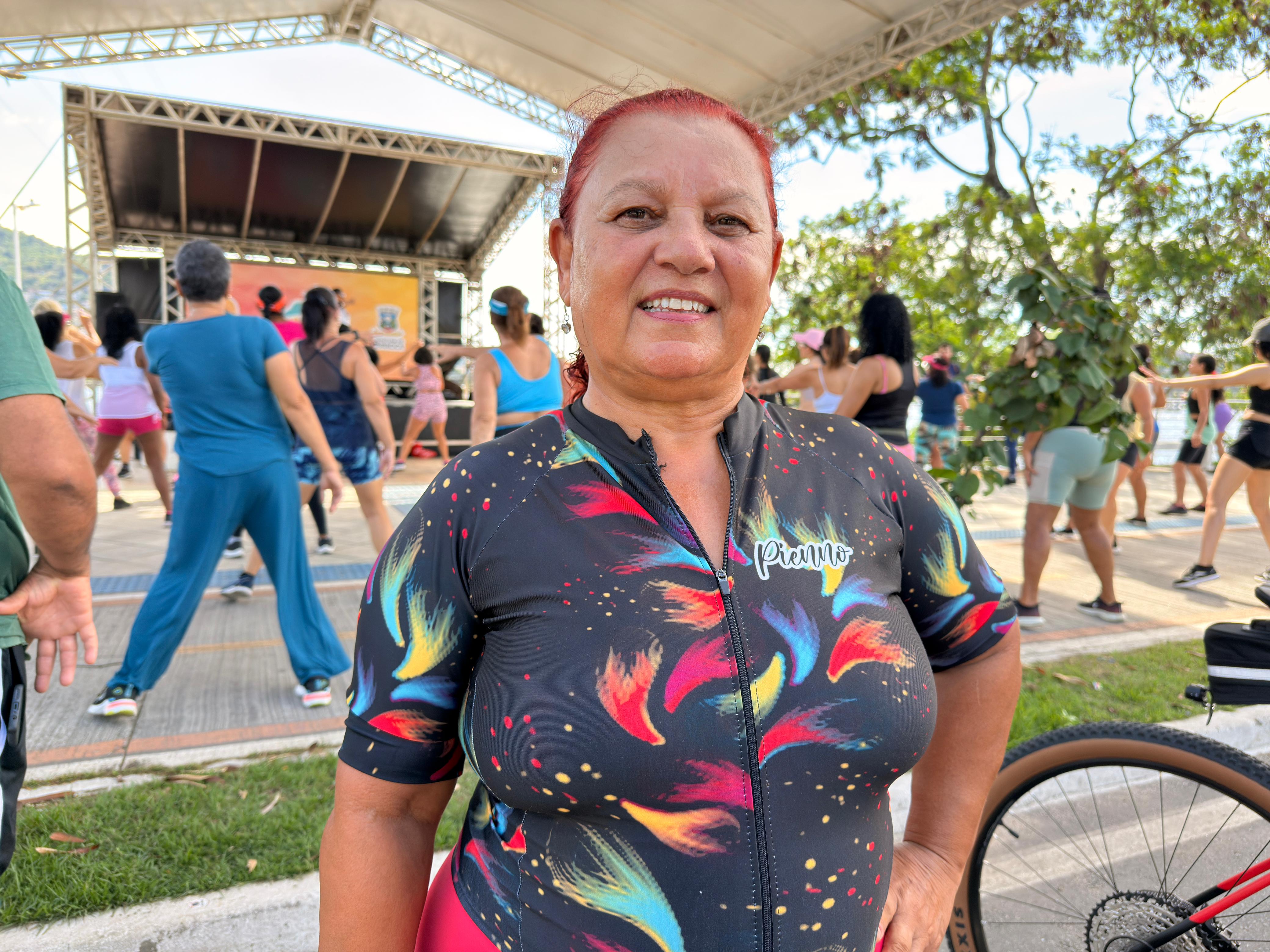 Dona Maria José, que mora no bairro São Geraldo, vai para a Orla de bicicleta aos domingos para participar da aula e fazer, assim, os seus exercíciosdo dia. "Gostei muito da iniciativa da Prefeitura de Cariafica e já estou ansiosa pelas outras aulas que terão aqui", disse.