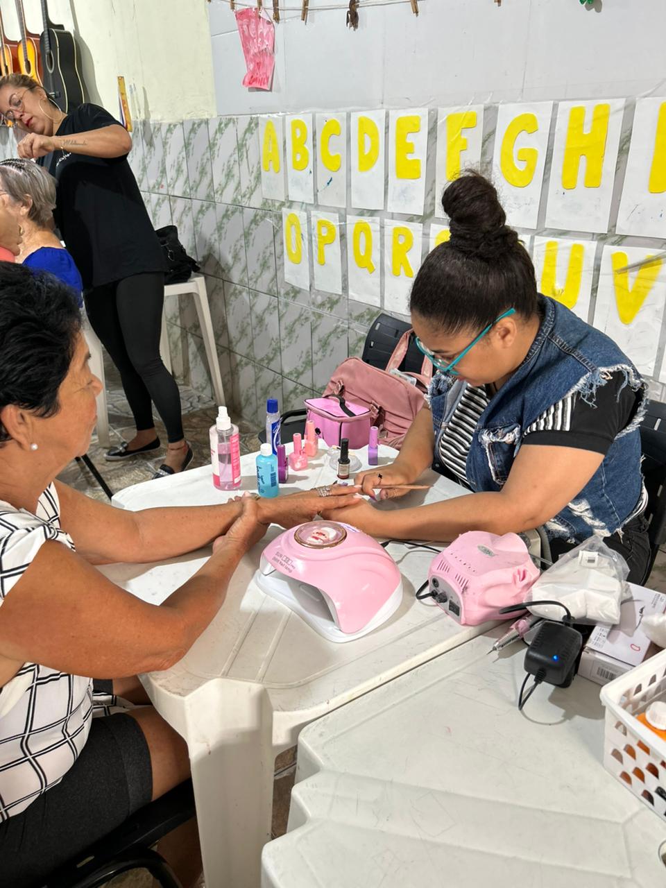 A iniciativa proporcionou um momento de autocuidado com escova e corte de cabelo, esmaltação, design de sobrancelhas e tranças para todas as participantes, reforçando a importância do bem-estar.