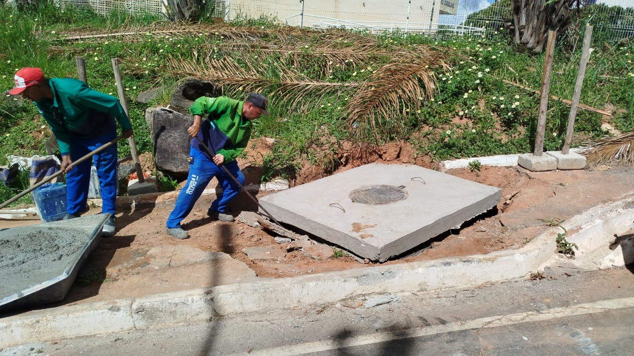 As equipes também executaram limpeza de pontos viciados de lixo, troca de tampas de esgoto, limpeza de redes de drenagem, capina e varrição em vários bairros atendidos pela programação. No bairro Santa Bárbara, foi realizada a execução de estrutura de drenagem com colocação de grelha, melhorando o escoamento da água da chuva, reduzindo riscos de alagamentos e fortalecendo a infraestrutura urbana da região atendida.