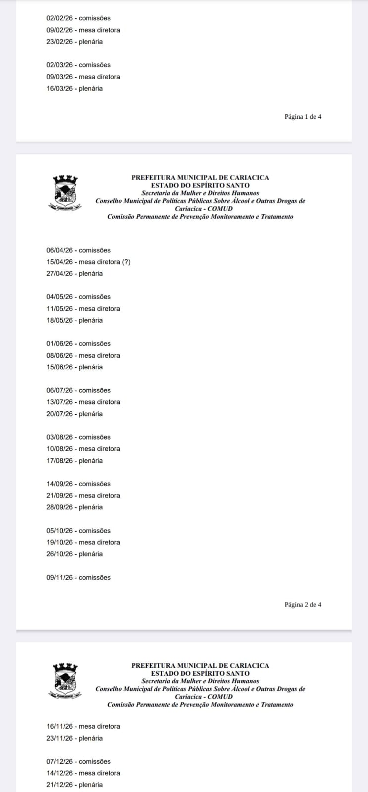 Da Secretaria Municipal de Saúde – SEMUS Titular Charlis Silva Oliveira; Suplente Sanny Ferreira de Jesus Da Secretaria Municipal de Defesa Social – SEMDEFES Titular Lorrayne Oliveira Freitas; Suplente Alam Maicom Ferreira Gusmão Da Secretaria Municipal de Educação – SEME Titular Thalita Sena Moraes Celestino; Suplente Roberto Carlos Machado; Secretaria Municipal da Mulher e Direitos Humanos – SEMDH Titular Idalina de Souza Costa; Suplente Gerusa da Costa Santos; Da Secretaria Municipal de Assistência Social – SEMAS Titular Edelaid Barroso Salles; Suplente Verônica Batista Cezário; Da Secretaria Municipal de Desenvolvimento Econômico e Inovação – SEMDEI Titular Marcos Martins; Suplente Luciana Augusto Marchezi de Oliveira Neves; De Serviço Público na Área Hospitalar Titular Florêncio Augusto Filho; Suplente Fabio Bremenkamp Cunha; Do Poder Judiciário Titular em vacância; Suplente em vacância; Da Defensoria Pública Titular em vacância; Suplente em vacância.